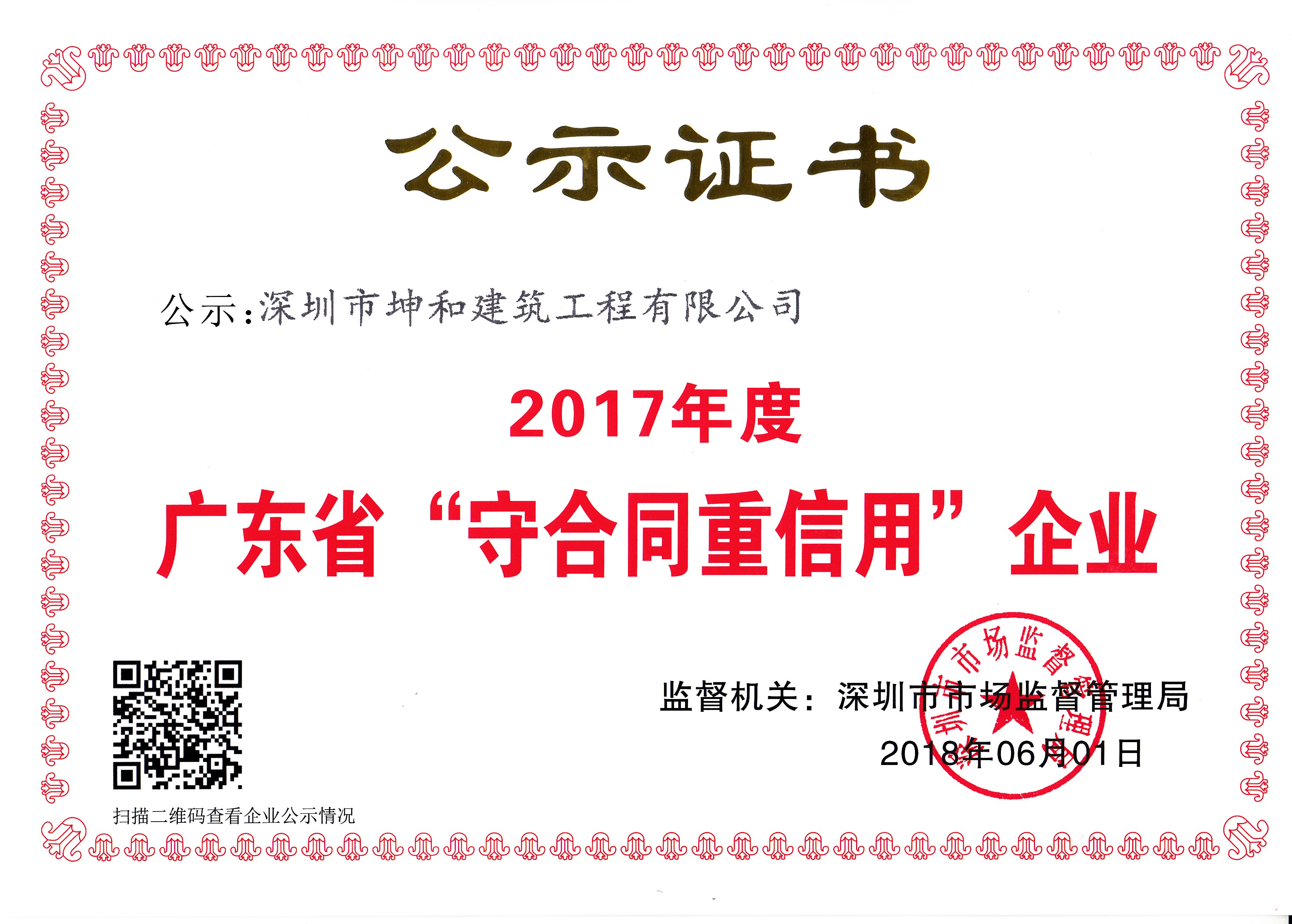 • 榮獲得2017年度“廣東省守合同重信..
